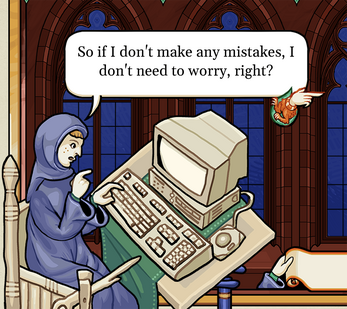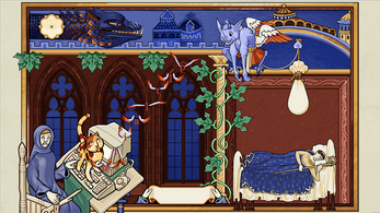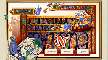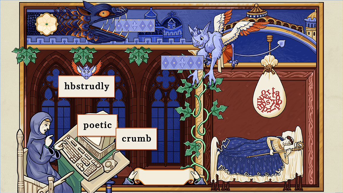 Type words as they appear. Any typos you make will go into the "shame bag". If the shame bag fills up, the abbot will wake up, and you lose! But don't worry, Titivillus, the demon of typos and mistakes, is here to "hlep!" He'll take the typos from the shame bag and add them to the words you need to type. Po Nroblem!